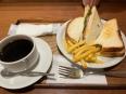 ランチメニューのハム玉子サンドを注文。セットドリンクはホットコーヒーにしました。
