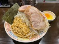 分厚いながらもほろほろほぐれるチャーシューは味わい深く、スープはニンニクのパンチと、マイルドさも感じる乳化系となっております。自家製極太縮れ麺はスープと絡み、もちもちとした食感もたまりません。